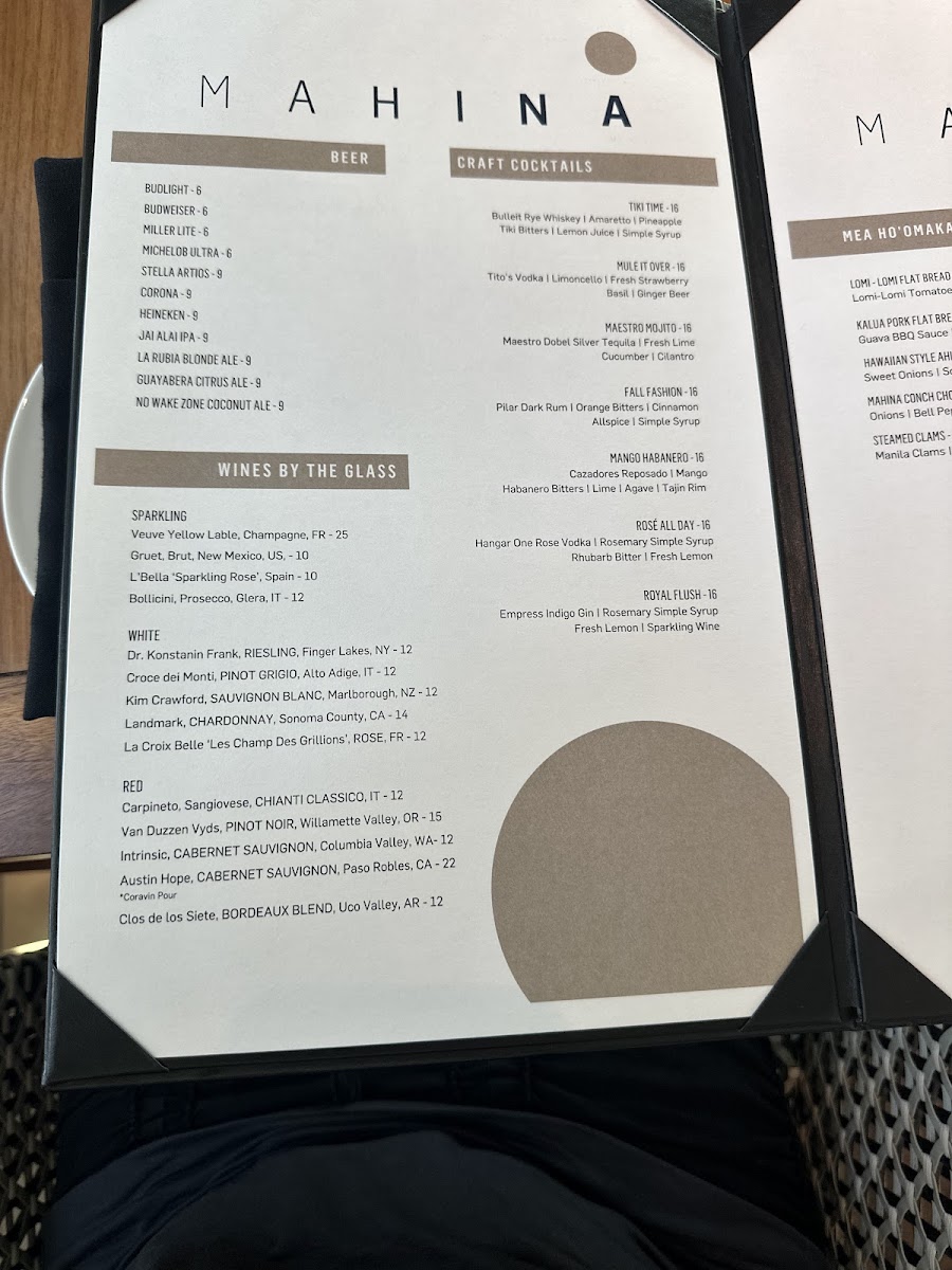 Pair these with a selection of beers or premium sparkling wines to elevate your dining experience. At Mahina, every dish tells a story, inviting you to savor the moment.